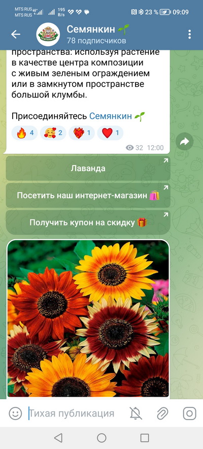 2.1 Купон на разовую скидку 10% на семена* для подписчиков Телеграм канала Семянкин. Купон можно получить в приложении Телеграм, подписавшись на телеграм канал, нажав кнопку "Получить купон на скидку". * - скидка не распространяется на семена Агрофирмы Партнер, семена с ярлыком "Хорошая цена" .